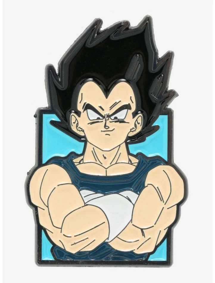 Lookin’ to keep your fighting skills sharp? No one better to spar with than Vegeta! Rep your favorite Saiyan with this pin, featuring a framed image of Vegeta.