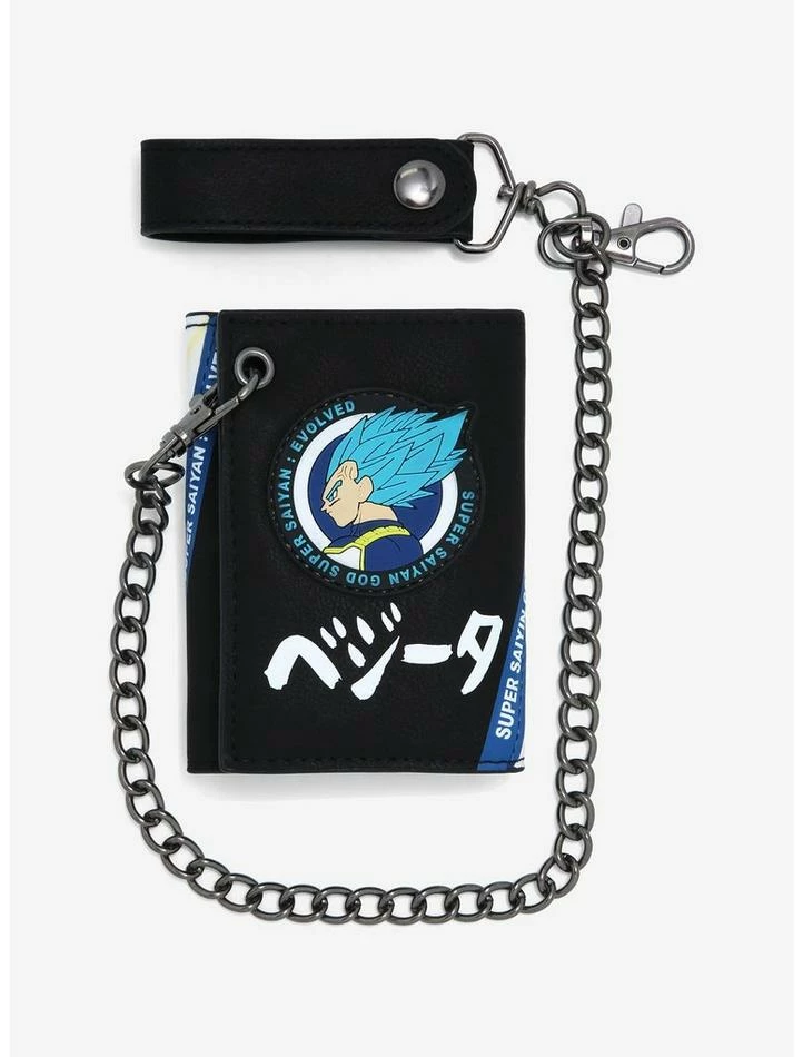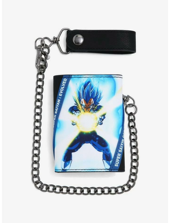 Β No one will be coming after your valuables with Vegeta protecting them! This Dragon Ball Super trifold wallet features Vegeta channeling his abilities in his Super Saiyan Blue form. Comes with a clear ID display, 4 card slots, a billfold and a detachable chain. Double snap-button closure