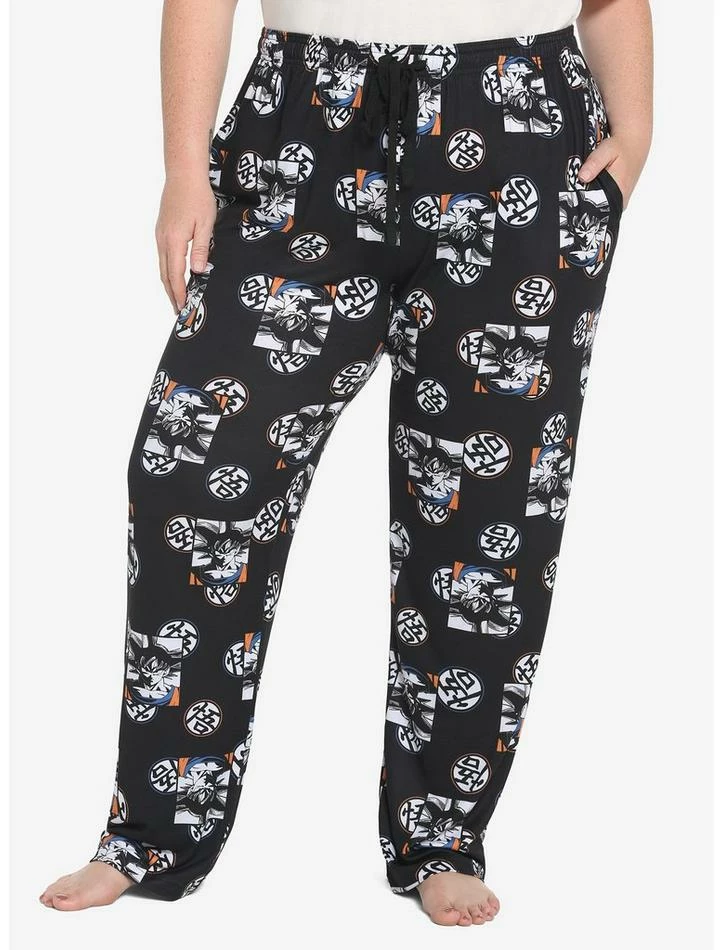 Sleep Super Saiyan style in these pajama pants. They feature an allover print of Dragon Ball Z‘s Goku and his symbol, plus a drawstring elasticated waist and pockets.