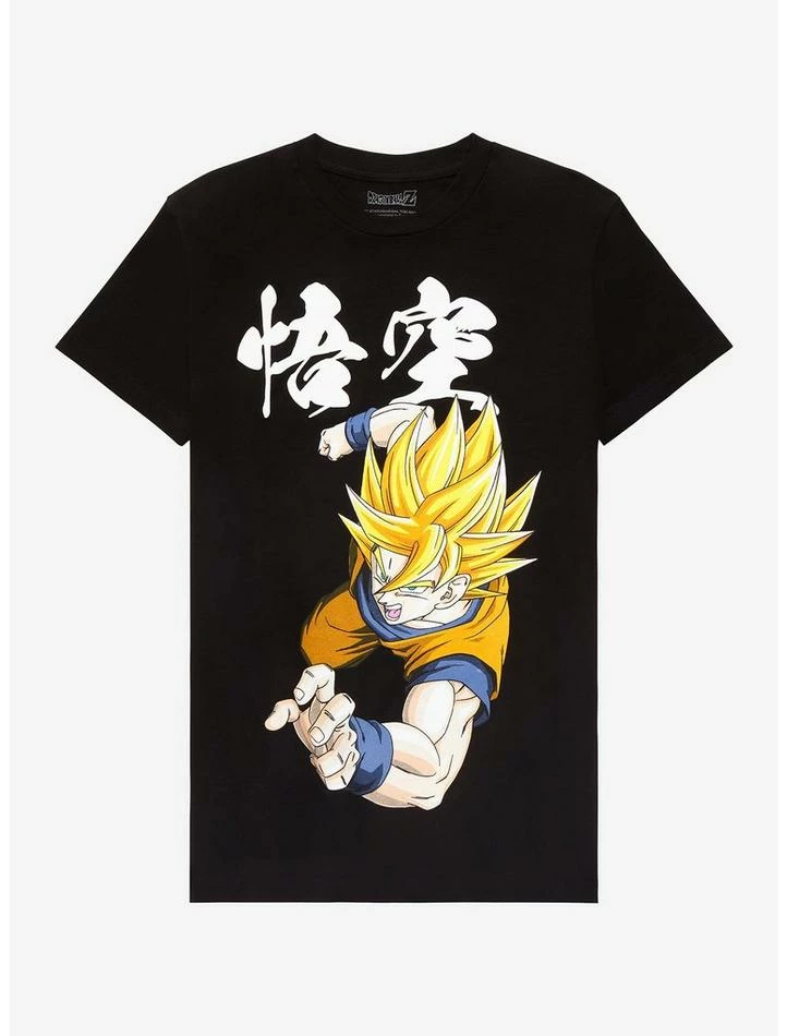 Power up with a newΒ Dragon Ball ZΒ shirt! This one features Super Saiyan Goku charging into action with Japanese text above. The back showcases the anime’s title over Dragon Balls and “Goku” below.