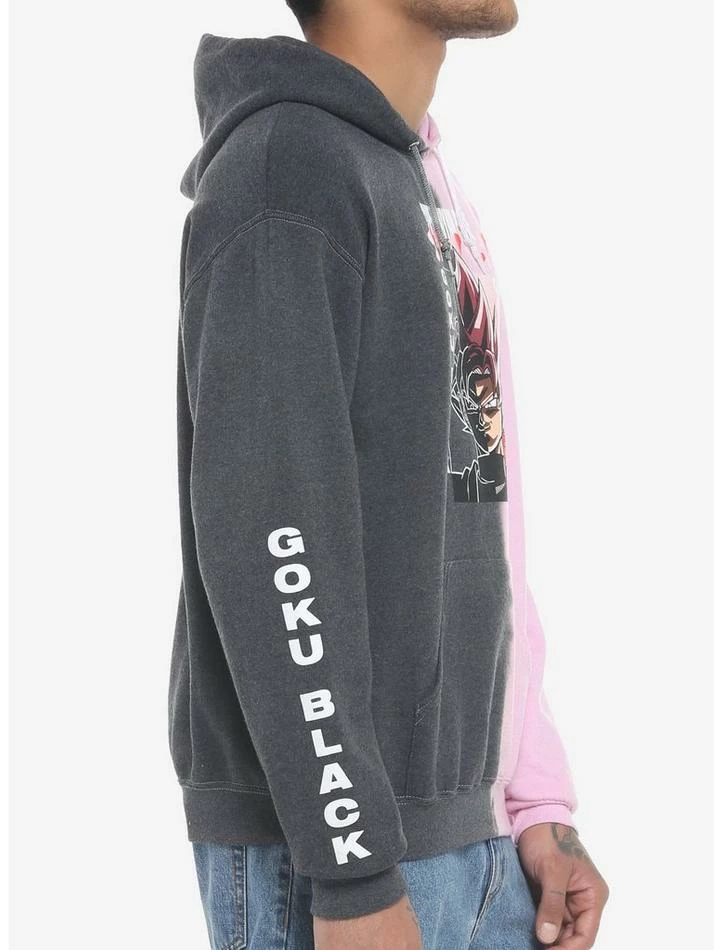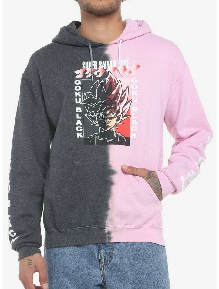 Consider yourself lucky to have the privilege of wearing a Super Saiyan RosΓ© hoodie! Such a piece is normally only accessible to Goku Black. This split-dye hoodie is inspired by the Dragon Ball Z divine form and shows a graphic of Goku Black on the front. Drawstring hood and front kangaroo pocket.